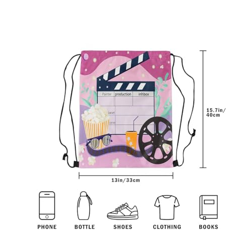 Erosebridal Home theater Drawstring Backpack 13X15.7 for Family Popcorn Filmstrip Print Drawstring Bags Clapper Board Decor Draw String Back Bag Movie Theme String Backpack Film Cinema Cinch Bag 5