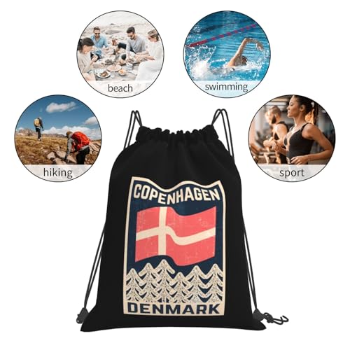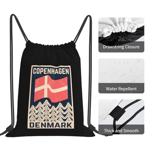 More information about Danish-Flag-Copenhagen-Denmark-Retro- Drawstring Bags, Lightweight Gym Sack with Adjustable Cord, Water-Resistant Sports Backpack for Men Women, Travel, Yoga, College (Black)