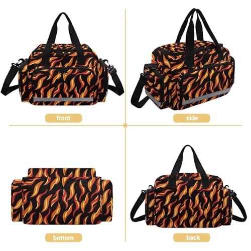 Flames Pattern Lightweight Gym Tote Travel Weekender Bag with Shoe Compartment & Wet Pocket, Water Resistant Sports Handbag for Fitness 5
