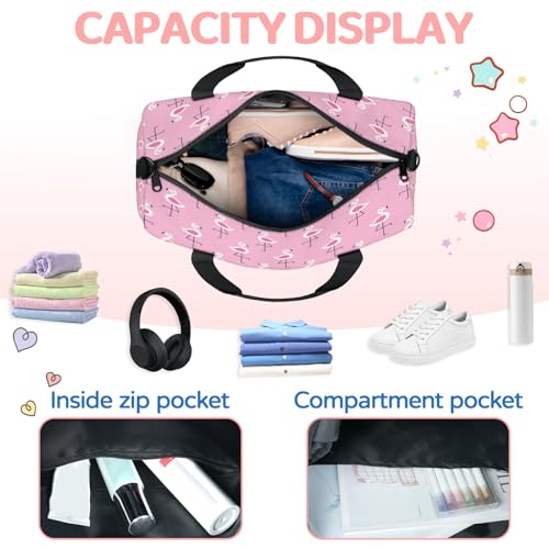 Flamingo Theme Pattern Sports Duffle Bag for Women Men Waterproof Overnight Weekender Bag with Adjustable Strap Travel Tote Bags for Beach Yoga Work Dance Swim 5