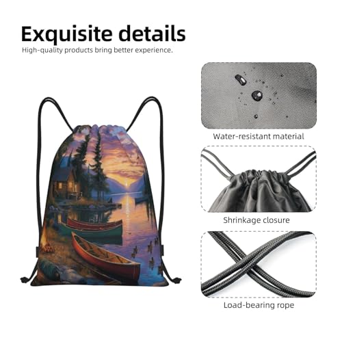 HOT ! Drawstring Bag, A Beautiful Lake Design Durable Water Resistant For Sport,Travel - Lightweight Sackpack