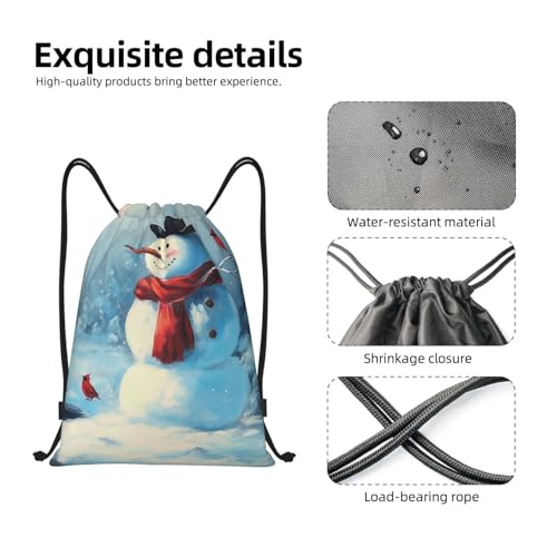 HOT ! Drawstring Bag, Snowman Design Durable Water Resistant For Sport, Yoga, Gym Gear, Shopping, Travel - Lightweight Sackpack