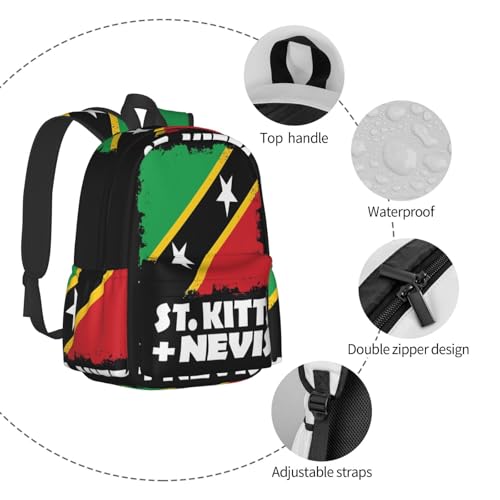 HOT ! St Kitts And Nevis National Flag Laptop Commuter Backpack Shoulder Bag Casual Back Pack Daypack Bags With Side Pockets For Work Travel Daily Use