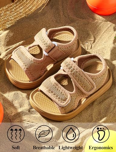 • [Non-Slip]-Unisex kid's open toe sandals use EVA elastic sole, a molded low-foam material is soft and hard, with resilience and non-slip pattern on the sole to make children more comfortable and safe to wear.