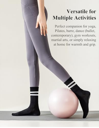 Non-Slip Yoga Grippy Socks with Grip - Mid Calf Workout Socks for Women, Pilates, Dance, Fitness - Breathable & Comfortable 5