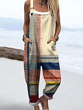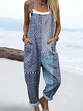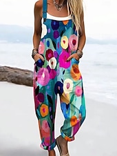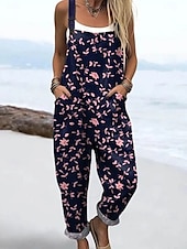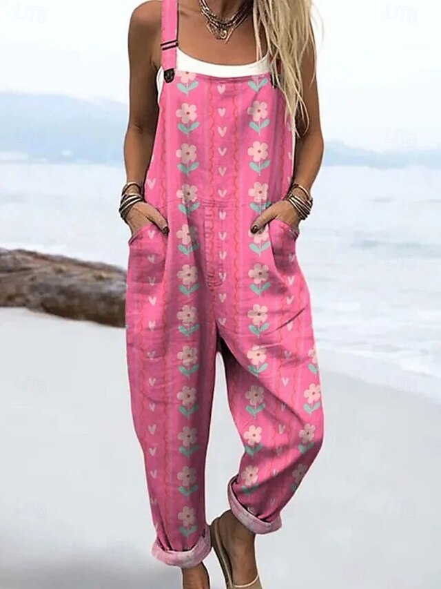 More information about Women's Dungarees Active Floral Sleeveless Sleeveless Straight Square Neck Pocket with Pocket Vacation Daily Loose Fit Yellow Pink Blue Summer