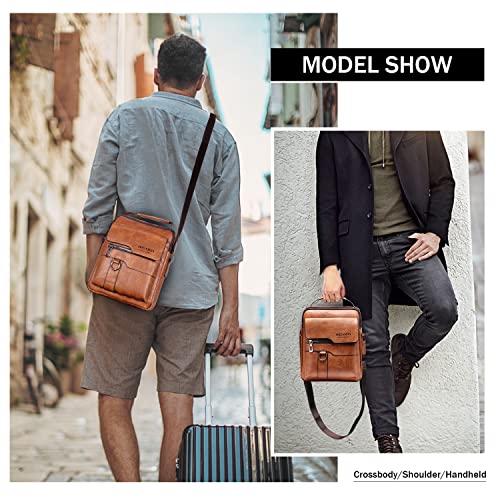 KUANG! Men's Shoulder Bag PU Leather Business Messenger Bag Briefcase Travel Crossbody Multi Pockets Handbag Purse 4