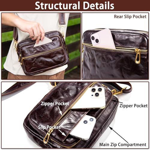 Genuine Leather Messenger Bag for Men Real Leather Small Crossbody Shoulder Bags Carry on Pouch Sling Satchel Purse 6