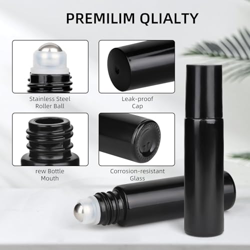 More information about 10ML Glass Essential Oil Roller Bottles,24 Pack black Oil Roller Bottles for Essential Oils, refillable rollerball bottle(24 Labels, Opener, Funnel, Dropper Included)