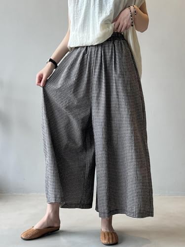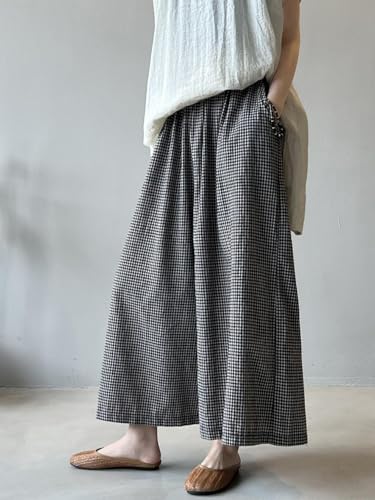 More information about Minibee Women's Linen Palazzo Pants Casual Wide Leg Gingham Pant Boho Plaid Loose Trousers with Pockets