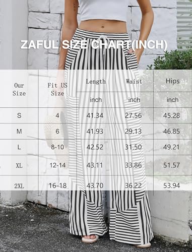 HOT ! ZAFUL Womens Linen Pants Wide Leg Casual Palazzo Pants Striped Casual Drawstring Elastic Waisted Lounge Trousers with Pockets