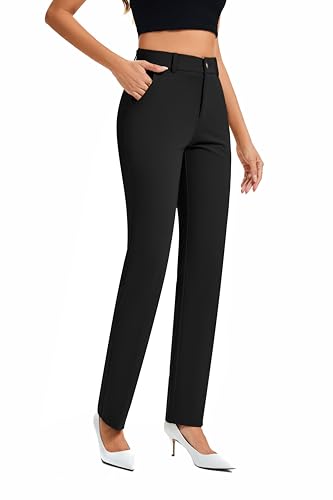 HOT ! FUNYYZO Women's Work Pants Elastic Waisted Straight Leg Business Slacks Outfits with Pockets