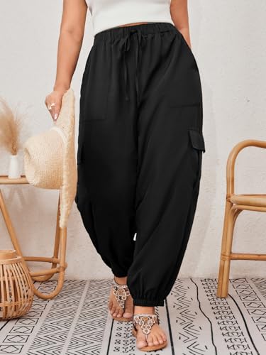 SOLY HUX Women's Plus Size High Waist Cargo Pants Casual Loose Baggy Jogger Pants Trousers Pockets 3