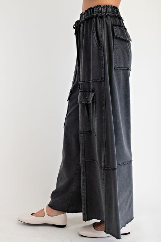 • 【STYLISH DESIGN】The 2025 trendy novelty wide leg cargo pants for women features stretchy high waist with a drawstring, multiple pockets, relaxed fit, solid color, patchwork style make this pant more chic and flattering. This comfy lounge pants is perfect for the woman who wants to keep charming and comfortable all the time!