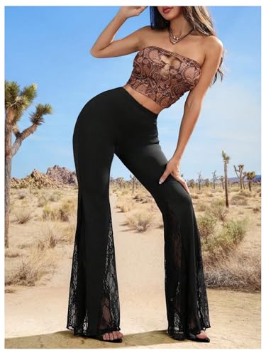 HOT ! Floerns Women's Floral Lace Pants Going Out Flare Elegant Dress Casual Trousers