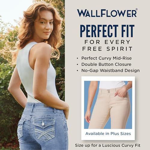 • Jeans That Hug Your Curves - WallFlower Women's Luscious Curvy Uniform Skinny Mid-Rise in Insta Soft cotton twill is super soft, super comfy, super you! Your new pair of extra comfy pants!