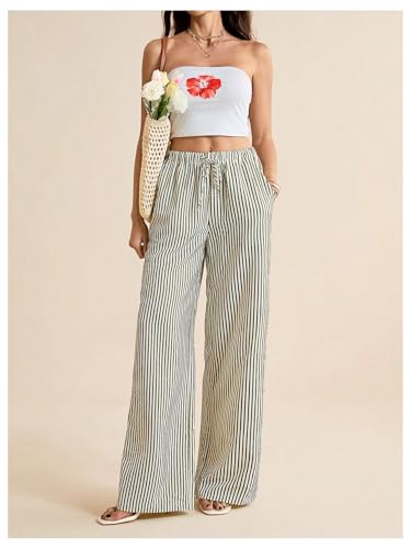 • Features: Striped pants women, tall womens pants, wide leg, drawstring waist, tie front, loose