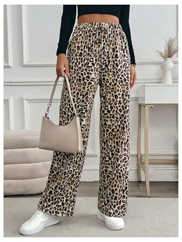 HOT ! Verdusa Women's Leopard Print Pants Y2K Streetwear Straight Leg Long Trousers with Pockets