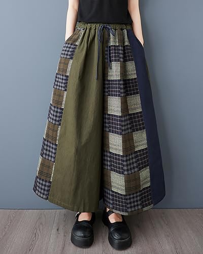 More information about ellazhu Women's Pants Patchwork Two Side Pockets Wide Leg Elastic Waist Baggy Straight Hem Casual GZ429 A