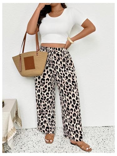 Floerns Women's Plus Size Cheetah Straight Leg Pants Drawstring Waist Y2k Long Trousers 4