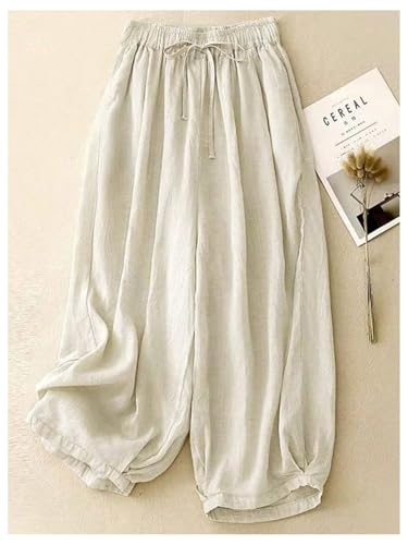 HOT ! Women's Wide Leg Baggy Palazzo Linen Pants Drawstring Waist Casual Long Lantern Trousers