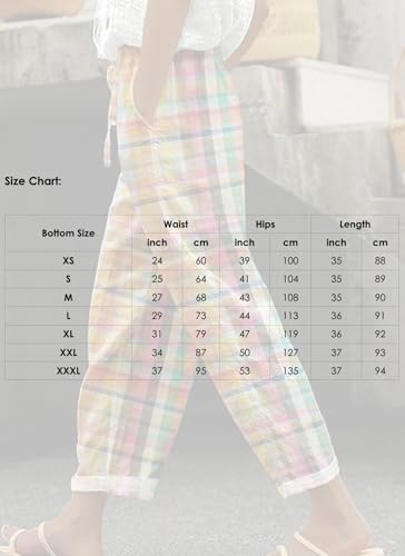 More information about Women's Gingham Capris Blue Pants 2025 Summer Casual High Rise Plaid Harem Slacks Business Lounge Pant with Pocket