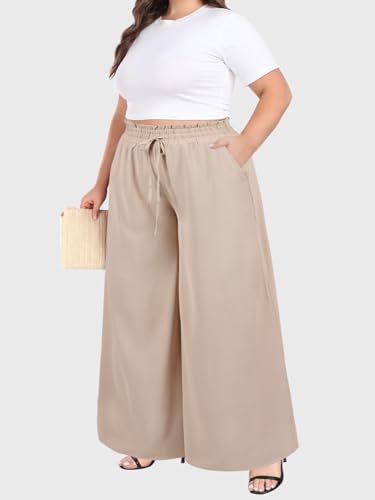 Moon Wood Wide Leg Pants Woman Plus Size Flowy Palazzo Pants Loose Culottes Summer Casual Lounge Trousers with Pockets 4