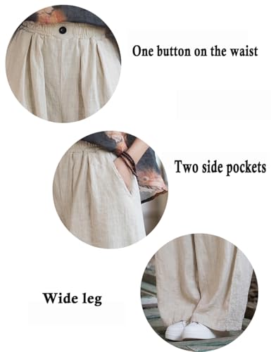 FTCayanz Women's Linen Pants Wide Leg Palazzo Pants Summer Casual Elastic Waist Trousers with Pockets 3