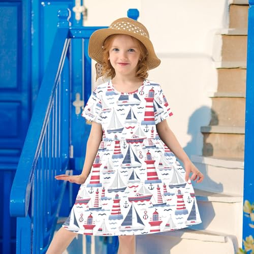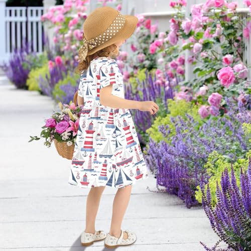 Lighthouse Girls Dresses Short Sleeve Casual Midi Sundress for Kids 4
