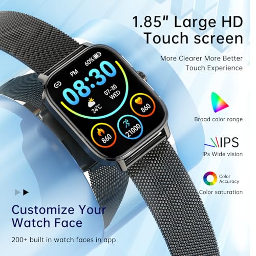 • Smartwatch with heart rate monitor and sleep tracker: Smart watches for men women adopted advanced optical sensors, allowing running watches to collect health data more accurately,ios android smart watch provides health monitoring features such as heart rate, blood oxygen (Sp02),and Sleep Monitoring(Deep/light sleep), helping you better understand your health and making a reasonable adjustment to your lifestyle black