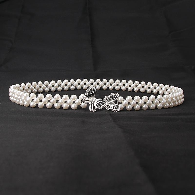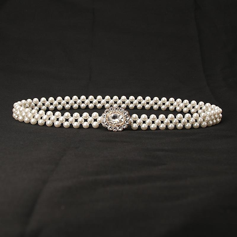 ladies pearl waist chain korean version rhinestone pearl decorative belt fashion sweet dress elastic belt women wholesale 7
