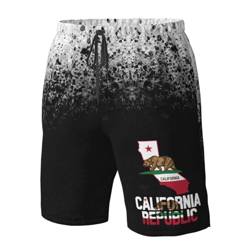 • 【Mens Swimsuits】: California Flag Map Men's Bathing Suits Or Swim Trunks are made to last, making it easy to find a pair that suits your personal style. These bathing suits trunks perfect for the summer months, but can also be layered with tights or leggings for cooler weather or paired with a variety of tops, making these board shorts mens swimwear a versatile addition to any wardrobe.
