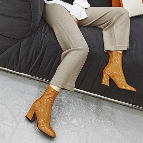 VOKLIN Women's Square Toe Dressy Ankle Boots Patent Leather Zipper Chunky High Heel Western Short Booties 4