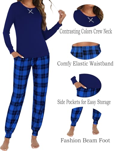 • Charming Design: This couple Christmas sleepwear features a long-sleeved shirt and contrasting line round neck design, which is easy to put on and take off, and very fashionable. The women's/men's plaid pants have 2 side pockets for increased storage space, you can store some small things, mobile phones or keys