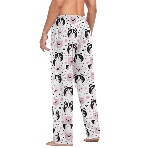 Men’s Pink Panda Bears Pajama Pants with Pockets, Comfortable Lounge Sleep Bottoms#699 1