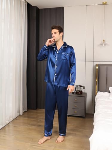 • 【GREAT AS A GIFT】: Pajama set for men, with high-quality silky fabric, is a GREAT CHOICE for your dad, husband, son, brother, and boyfriend as a Birthday gift or A PREMIUM Present for New Year, Valentine's Day, Christmas, Wedding gift,Pajama Party, Honeymoon, Vacation, or other Festivals, Holiday or Anniversaries.