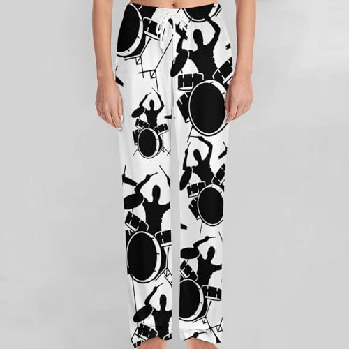 HOT ! Drummer And Drums Men's Sleep Pant With Pockets Drawstring Pajama Lounge Pants PJ Bottoms For Women