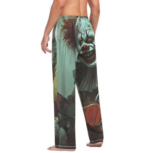 HOT ! Clown Scary Yellow Pajama Pants for Men Men's Separate Bottoms, Lounge Pants with Pockets S