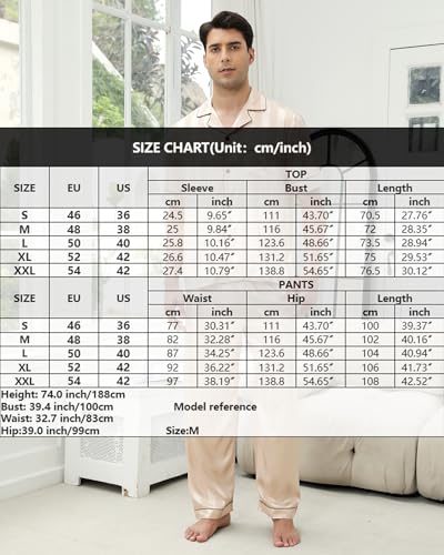 • Size and Care: The silk pajamas for men is S-XXL optional, please check our size chart before ordering, can machine washded or hand washed, do not iron at high temperatures, do not bleach, tumble dry low or line dry