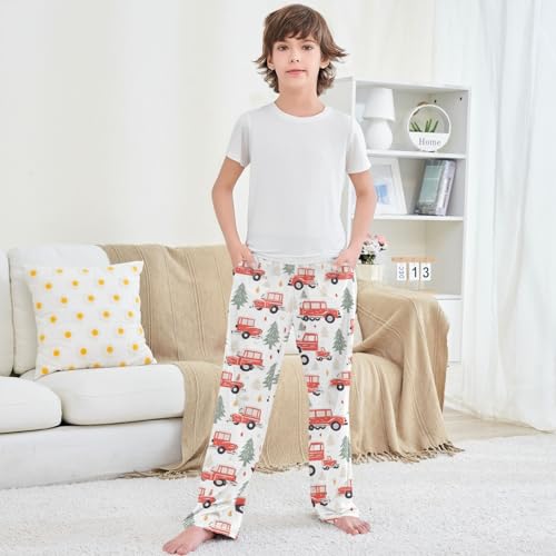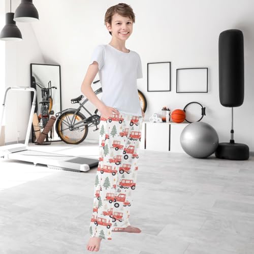 Boy's Pants Red Truck Car Christmas Tree Jogger Pants Elastic Waist Long Bottoms Trousers with Pockets 6-14 Years