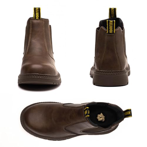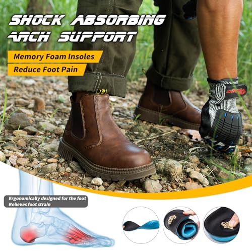 KELODON Waterproof Steel Toe Boots For Men-6 Inch Leather Slip On Safety Work Boots Mens Steel Toe Shoes Indestructible Non Slip Resistant Ankle Industrial Construction Boot 5
