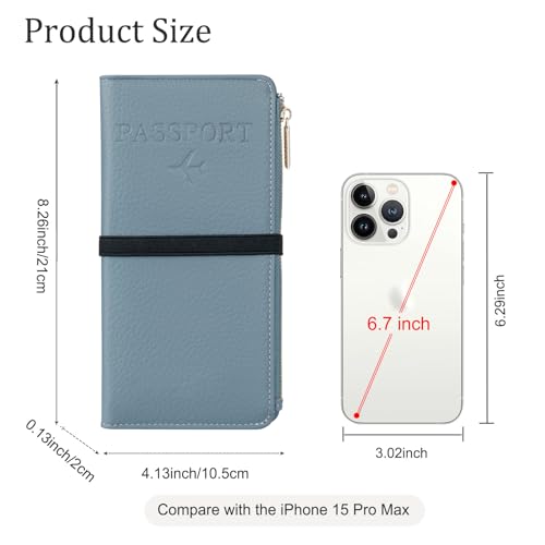 TIGARI Rfid Passport Wallet for Women, Travel Wallet Passport Holder for Travel, Leather Zipper Pocket Card Slots Purses, Travel Document Organizer Waterproof Travel Accessories (Blue) 5