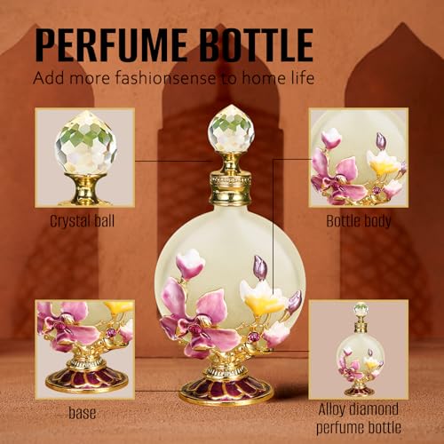 • 【Christams Gift Idea】Glittering rhinestones bejeweled enamel glass perfume bottle with antique looking curves, exquisite spray color enamel, suitable for personal use or be used for glass art collection, great feminine gift idea for friends, lovers, ladies, teen girls or those pursuing elegance.