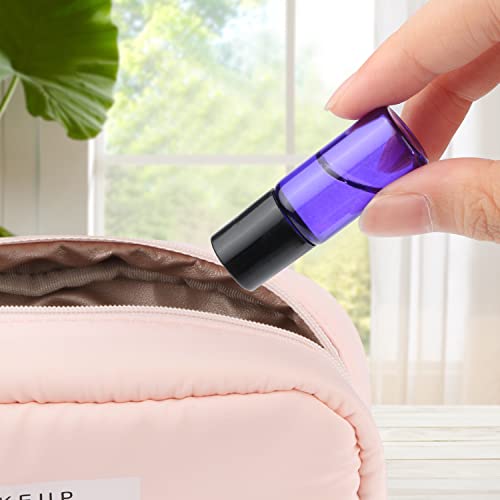 Pack of 50,3ml Glass Roll on Bottle Mixed Color Sample Test Roller Essential Oil Bottles glass vials With Stainless Steel Roller Balls,Black Plastic Cap For Travel Aromatherapy,Perfume Oils 5