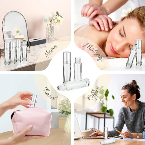 10ML Essential Oil Roller Bottles, 4 Pack Clear Silver Oil Roller Bottles for Essential Oils, Roll on Bottle with Stainless Steel Balls(4 Labels, Opener, Funnel, Dropper Included) 3