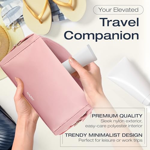 More information about KAZAY Expandable Toiletry Bag with Side Clips for Adjustable Sizing, Premium High-Density Nylon, Open Wide Zipper, Stylish, Water Resistant, Cosmetic Bag, Makeup Bag, Full-Size Bottles, Unisex (Pink)