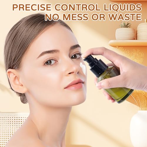 4 Pack 2oz Glass Pump Bottles Set for Toiletries, 2 Amber & 2 Green Pump Bottle Dispenser with Travel Pouch, Leak-Proof Mini Pumps Dispenser for Lotion, Serum, Oil - TSA Approved Travel Size Container 6