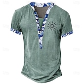 More information about Men's Floral T Shirt Henley Shirt Tee Short Sleeve Designer Basic Ethnic Outdoor Casual Daily Summer Light Green Dark Brown Khaki Henley Henley T-Shirt