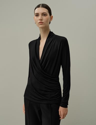 LilySilk Womens Silk Breeze Jersey T-Shirt Long Sleeves Blouse V Neck Wrap Tee Ladies Soft and Stretch 6