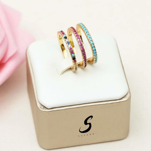 HOT ! Gold Stacking Rings for Women Non Tarnish,14k Real Gold Plated Colored Diamond Rings for Women Elegant Eternity Band Pinky Ring Stack Personalized Jewelry Gift